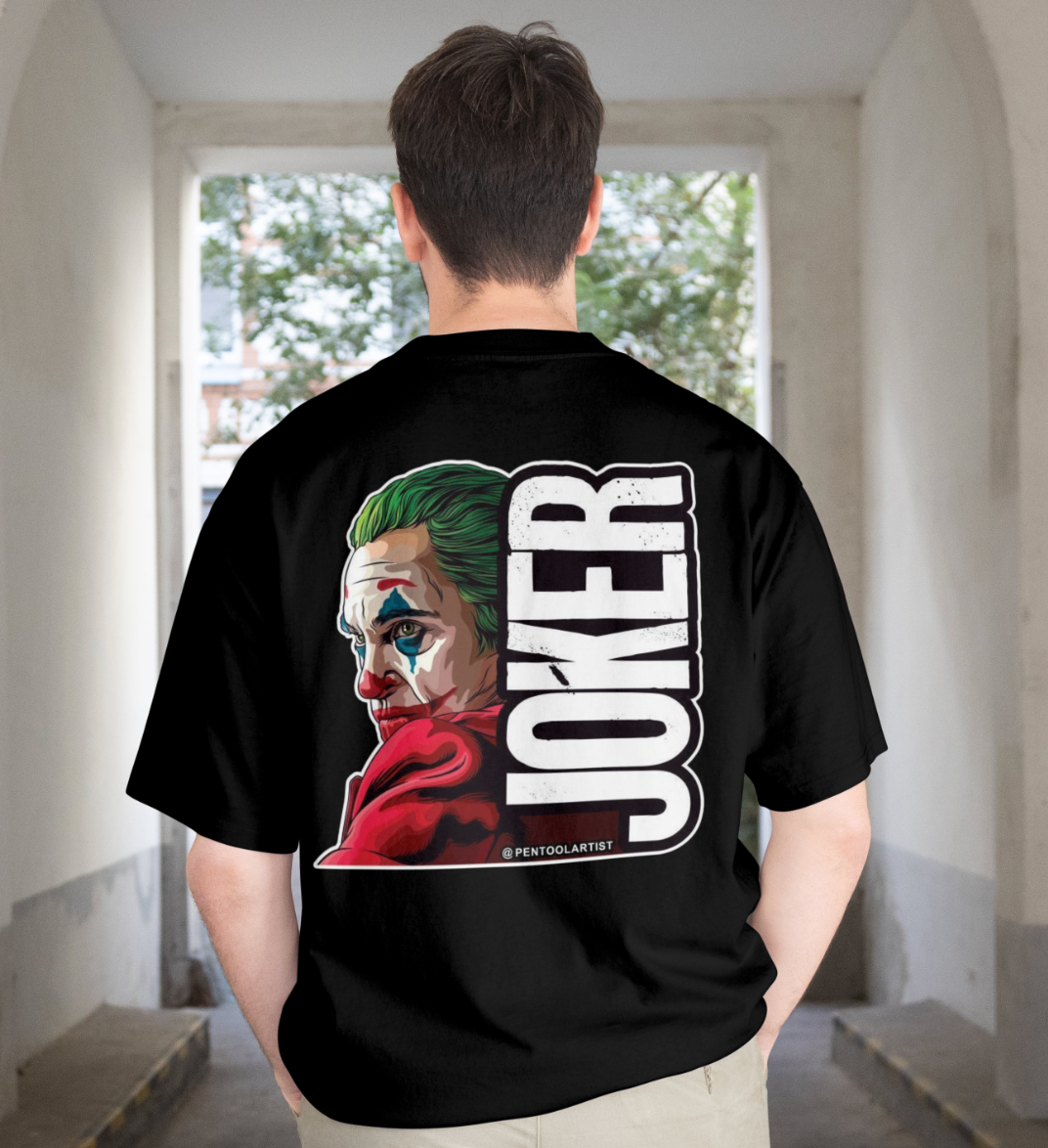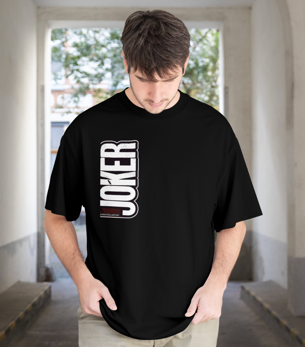 Striking black T-shirt featuring a bold, colourful Joker graphic. A perfect pick for fans who love edgy, statement-making style.