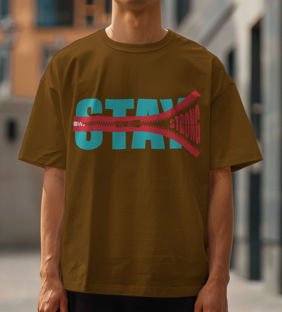 Zipped Strength Graphic Printed Oversized T shirt